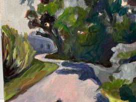 This oil on canvas painting is a surrealism snapshot, it depicts a still life of landscape of shadows and trees! A classic piece sure to inspire conversation in your home.