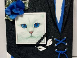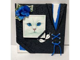 An oil painting of a beautiful white cat on a mixed media canvas! It's as classic as the tuxedo design on the canvas. Certain to be a dash of classiness to any home. Created by HHHS Board Member, Connie!