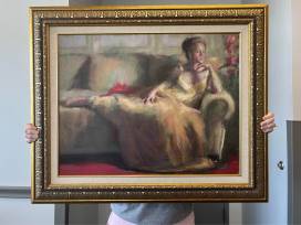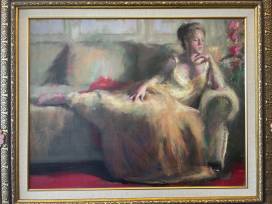 This stunning 30x36 inch print depicts the age-old classic painting of a lounging lady. Includes bronze tone frame.