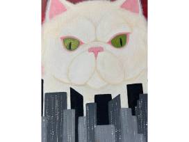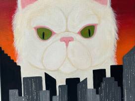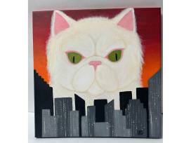 This 12inch square painting depicts a giant cat overlooking the cityscape! Even more ominous than Godzilla, Manhattan can expect to have subways used as kicker toys, fountains kicked over like water bottles, and a variety of hairballs rolling down the streets - the DOOM!