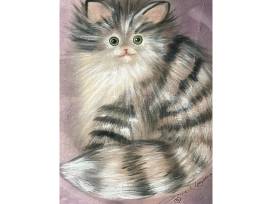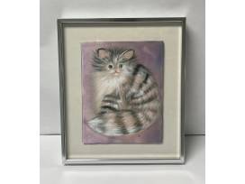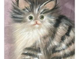 This stunning kitty portrait was painted with fabric dye and fabric paint on silk, created by renowned local artist Diane Lawrence! A true treasure!