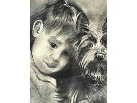 This charcoal drawing of a little girl and her dog conjure up a time past and some favorite famous human-animal connections - Dorothy and Toto, Orphan Annie and Sandy, Opal Buloni and Winn-Dixie.
