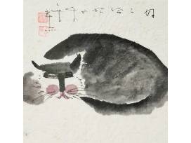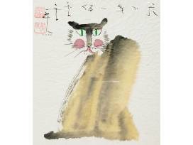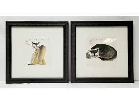2 gorgeous cats depicted in watercolor by artist John Chen.