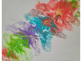 Acrylic on canvas featuring the artist's depiction of the rainbow bridge.