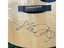 I've got one hand in my pocket and the other is holding this signed guitar!