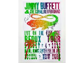 *This item was signed by Jimmy Buffett during his performance at Bethel Woods Center for the Arts on August 4, 2022. Upon auction end, please allow 4-6 weeks for this item to be shipped. This item will be wrapped in a plastic sleeve, rolled and shipped in a poster packing tube. Please ensure the correct mailing address is listed in your account.