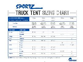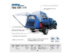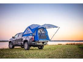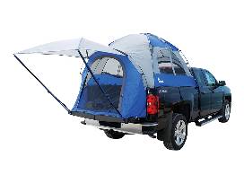 The Napier 57 Series Sportz Truck Tent allows you to sleep comfortably protected in the bed of your pickup. Its shock-corded, color coded fiberglass and steel poles allow for fast set up in as little as 15 minutes. Bed straps provide a secure, worry-free anchor and wrap the side of the tent over the side of your truck to ensure rain drips down and away from your sleeping area. Tent wall and roof is constructed of polyester taffeta with a 1200mm polyurethane coating, while the full rain fly has taped seams to protect you against the wettest weather. The truck tent provides a comfortable sleeping area for two with its patented sewn-in polyester oxford waterproof coated floor and more than 5.7' of headroom. Enjoy 2 ceiling vents and 3 NO-See-Um mesh windows with middle divider to allow for optional ventilation. The tent's 4' x 4' awning secures to the tailgate and does not require guide ropes to provide shade or protect bulky gear. A convenient rear access panel allows you to access the cab to run cords from the cab to the tent without leaving the tent! Features 2 interior pockets to help keep gear organized and out of the way. Includes expandable carrying bag for storage included. Weight: 20 - 25 lbs. Rated for 3 season use. Center height: 5.7'. Imported.