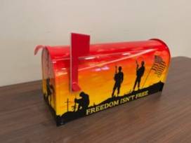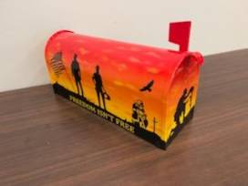 Custom-made air-brushed one of a kind mailbox honoring military, EMS & fire.