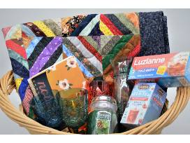Are you ready to sit on the front porch sipping iced tea? We have you covered. This basket comes stocked with a set of 4 acrylic goblets with a carafe for you to entertain your friends or have a family dinner alfresco. 2 packs of cold brew tea - one unsweeted and one flavored to suit every tastebud. A notebook to write all your great ideas, a handmade lap quilt in case it gets chilly, and a candle with a smell for when you dream of fall.