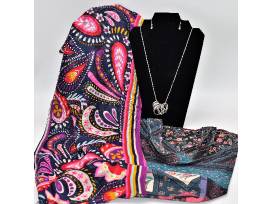 You'll add a sense of flair to your wardrobe with this trio of stylish accessories, starting with the Vera Bradley Soft Fringe Scarf in Painted Paisley. Keep it handy for unexpected chilly days (or meeting rooms) or when you want to adopt the mystery of an old-time movie star. This stunning scarf measures 30" x 72" and is 100% rayon.