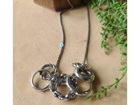 The Paparazzi Audacious Attitude White Necklace features white rhinestones, faceted surfaces, twisted finishes, and chain-like patterns. An edgy collection of mismatched silver rings glide along a lengthened silver popcorn chain in a glamorously gritty finish. Features an adjustable clasp closure. A pair of matching earrings completes the set.