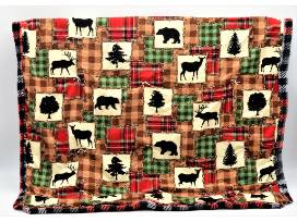 - Handmade, super soft plaid baby blanket (28.5" x 29.5") featuring trees, deer, beers & moose.