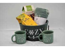 Do you need to prepare for the next upcoming snowy or rainy day? We have you covered with two sets of mugs, a cozy throw, ground Colombian coffee, and some gluten-free biscotti.