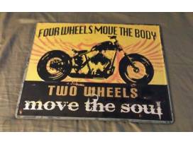 - 9.5" x 12" Open Brands, LLC "Four wheels moves the body. Two wheels moves the soul" sign