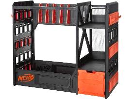 The storage rack can hold up to 20 blasters of different sizes with shelves, drawers, rail mounts and hooks. Upgrade your NERF battles to the elite level with this rack to organize your gear, making each battle all the more realistic.