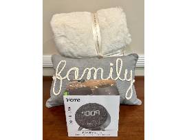 Ultra-soft crème blanket and pillow donated by Elaine Kanas