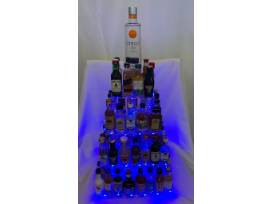 1 - 3 Amigos Tequila, 1 - Cafe Coffee Liquor, 1 - Aspen Peach Schnapps, 1 - Malibu Rum, 2 - Jameson,1 - Veil Mango Rum, 1 - Veil Whipped Cream Vodka, 1 - Veil Espresso Vodka, 1 - Gentlemen Jack Jack Daniels, 1 - EJ Peach Brandy, 1 - Evan William Honey, 1 - Veil Peach Vodka, 2- Grand Marnier,1 - Veil Caramel Vodka, 6 - Fireball, 2 - Mr. Stacks Peppermint Schnapps, 1 - Tanqueray, 1- Jack Daniels Tennessee Honey, 10 - Yukon Jack, 1 - Deep Eddy Sweet Tea, 2 - Bailey's Irish Cream, 3 - Glenlivet Scotch Whiskey, 1 - Black Label Johnnie Walker, 4 - Tito's Vodka, 1 - Bird Dog Kentucky Straight Whiskey, 2 - Bacardi Rum, 1 - Clyde May's Straight Rye Whiskey, 3 - Disaronno Amaretto, 1 - Bombay Dry Gin, 1 - Deep Eddy Ruby Red Vodka, 2 - Stolichnaya Lime Flavored Vodka, 2 - Southern Comfort, 2 - Captain Morgan Spiced Rum, 2 - Canadian Whiskey, 1 - Largo Bay Banana Rum, 1 - Veil Raspberry Vodka, 2 - EJ Brandy, 1 - Stolichnaya Vodka, 1 - Bird Dog Blackberry Whiskey, 1 - Veil Pomegranate Vodka,1- Southern Sweet Tea, 1 - Clyde May's Original Alabama Straight Whiskey, 1 - Veil Cranberry Lime Vodka, 1- Veil Vanilla Vodka, 1- Veil Blueberry Vodka, 1 - Dewars Scotch, and 1 - Larceny Bourbon. All displayed on a beautiful acrylic stand. Fancy a cocktail?