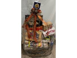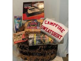 Looking to host a Bonfire night but lack the essentials? Then the "Bonfire Night" basket has you covered. This basket contains a Campfire unisex white sweatshirt (size L), a Hersheys Smores maker, a 2-pack of Bic multipurpose lighters, a log wire basket, kindling fire-starters, two (2) indoor/outdoor go logs, a bonfire go log, and a pack of hardwood and tumbleweed fire-starters. With all this gear, you're ready for a night of fun under the stars!