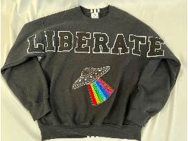 "Liberate" Crewneck with Spaceship Embellishment Size S/M (pre-shrunk)