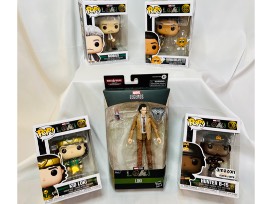 Action Figure set from the Disney+ Show Loki includes a Loki Legends action figure and 4 Funky Pops - Mobius, Hunter B-15, Ravonna Renslayer and Kid Loki.