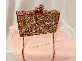 For all of your special occasions! The Sophia Webster Clara Crystal Box Bag in gold.