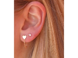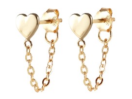 Heart measures 0.25 inches. Heart chain earring in 18K gold vermeil (sterling silver with 18K gold plating).