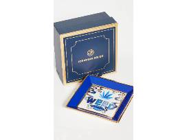 Expand your horizons with this Jonathan Adler Druggist trays and catchalls. Dreamy third-eye mindscapes rendered in Delft-inspired blues and accented with real sparkly gold. High-fired porcelain elevates the experience. Packaged in a nifty gift box, it makes a perfect hostess present (or pick-me-up for yourself).