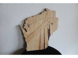 Multi-Color handmade wood artwork cut in the shape of Wisconsin. Made by the woods department and Mr. Gain.