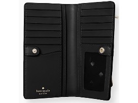 This stunning, large yet slim Kate Spade wallet has everything you need to stay organized. It has 12 credit card slots, billfold compartments, zip pockets at the interior, and snap closure.