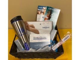 Pamper yourself with this ultimate relaxation basket! Enjoy a one hour service (either a signature facial or a standard massage), Glove Treat Boots with paraffin, a travel coffee mug, glycolic cleanser, eye gel, and more!