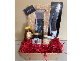 This bread basket is sure to please any palate. Filled with all kinds of delicious goodies from Loafers Bread Company, this basket includes jam, honey, a cutting board, a knife, and a Loafers gift card
