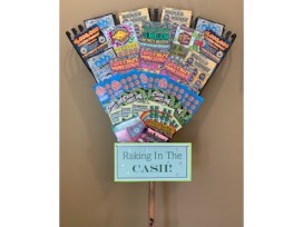You'll be raking in the cash with this rake loaded with scratch off lottery tickets. Try your luck--you may just hit the big time!