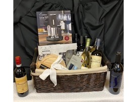 What's not to love about this basket? Filled with a variety of wine, this basket is perfect for any occasion. Included are several bottles of red and white wine, 4 wine glasses, an 8 piece electric wine set, Chianti wine salami, and a cheeseboard. Cheers!