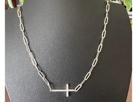Add some sparkle to your life! This beautiful side cross necklace with a silver chain link, designed by Blocher Jewelers in Ellwood City, is the perfect present for your special someone!
