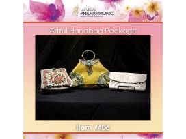 3 fun and colorful evening bags as well as a Judith Lieber silk scar and The Artful Handbag written by Judith Lieber.