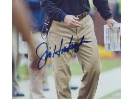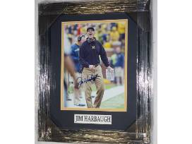 1Jim Harbaugh is a former professional football player that has continued his football career by becoming a head coach. During his college years, he played football for the Michigan Wolverines. In his final season with the Wolverines, he was named the Big Ten Conference Most Valuable Player. He has since returned to the University of Michigan as the head coach for the Wolverines. Since taking the job in 2015, he has led the team to 5 consecutive winning seasons. All memorabilia include a Certificate of Authenticity (COA) from Allstar Charity Services.