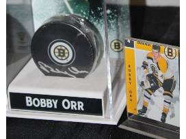 1Considered to be one of the top hockey players of all time, Bobby Orr's career included winning two scoring titles as a defenseman. He is known for his defense and won three MVPs. All memorabilia include a Certificate of Authenticity from Allstar Charity Services