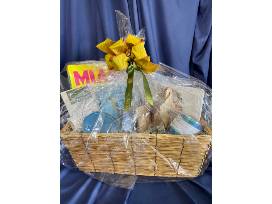 1Gift Basket: $50 Gift Certificate, Spongelle Buffer Lavender Sky, Canetti Design Magnet Frame 4 x 4, Black Lava Sea Salt Caramels, Swig Stemless Wine Cup 14 oz, Miami Beach Book, Two?s Company Small Charcuterie Boards, Summer Drinks Book, Royal Standard Crown Platter,