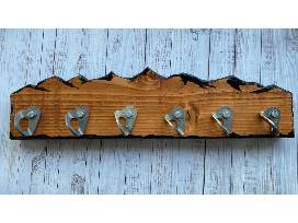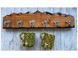 Each gear rack is cut, aged, stained, painted, and sealed by hand. It comes with a french cleat hanging system which rates it to 75 lbs. It also contains retired hanger bolts pulled from the Wasatch Range by the Salt Lake Climber Association's Bolt Maintenance crew.