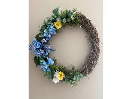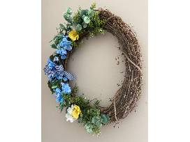 Adorned with beautiful shades of blue and yellow, this handmade wreath will be the perfect statement for your front door, mantle or wall decor! Summer time or spring time, this wreath will be perfect for either season.