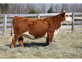 We purchased a Flush on 7009 from Kyle and Tonya Pérez back in 2019 and Lola was the result. Lola is a rising star in our donor pen at Ridgetop Farms. She is a flush mate to PCC 7009 173D MAVERICK 0183 ET, who was the Champion Polled Hereford at Cattleman's Congress, Fort Worth Stock Show and Great Northern Livestock Expo. She is the essence of form and function with the udder/teat quality that we all dream about in a 2 yr old. She currently has a DCF 628 PROMOTE 824F ET bull calf at side.