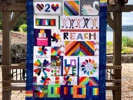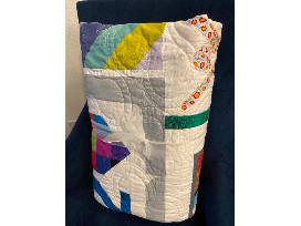 Hand Crafted Rainbow colored Quilt (app 62"w x 86"L) , Made for Pizza Klatch Gayla fundraising event by members of the South Sound Modern Quilt Guild. https://southsoundmqg.blogspot.com