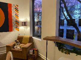 A private evening for a small group or family to use the Room 107 micro-event & screening room in downtown Olympia, featuring: 110" projector screen, surround sound, wifi, popcorn machine, and ten real theater seats. A great opportunity to (safely) get out of the house and have a fun night out! Book any evening, depending on availability . Bathrooms on-site.
