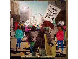 April Morrison is a St. Louis-based mixed media artist who uses various media including acrylic painting and paper sculpting to portray everyday, relatable scenes in the local culinary and LGBTQIA+ community.