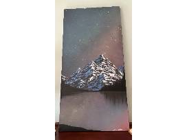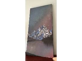 This spellbinding painting will add beauty to any space and have you dreaming of dazzling mountain nights. "Autumn Embrace" was painted by Brian Nutt II, who paints under the artist name Orbium Skye. This piece measures 48" x 24."