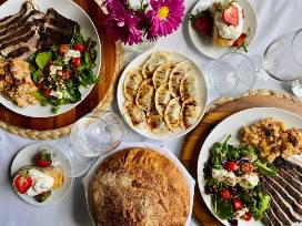 Enjoy a delicious dinner for 4 made by Drumm Farm's chef Taylor Cauthon, all delivered to your door! This delicious meal features meat and vegetables from right here at Drumm Farm. Included in each serving are an appetizer, main, sides, dessert, and wine. Please see attached menu for full details on this delightful culinary experience.
