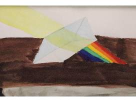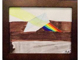 Artist Statement: The prism in the picture represents a way of looking at things differently, like a beam of sunlight, as it goes through the prism and splits into a rainbow.