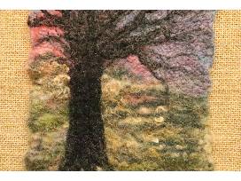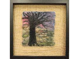 Piece Details: Piece is 13" x 13" and set in a black frame with burlap backing. Frame is pre-set to hang.