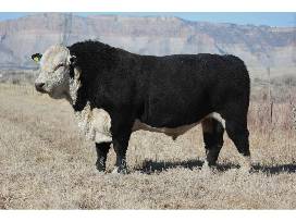 A horned bull with a ton of neat pieces. His dam was the Grand Champion HX at the 2019 Black Hereford Nationals. He is halter broke and won his division at the Royal this year.
