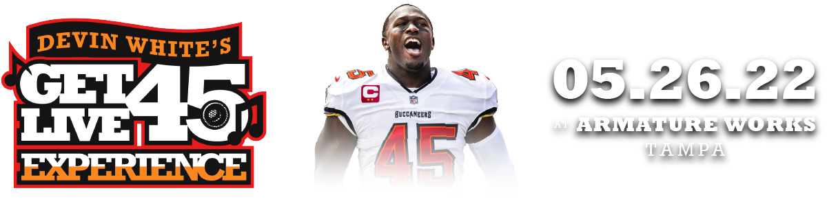 Before the concert enjoy learning more about the newest community outreach program of Get Live 45 Foundation directly from our founder, Devin White! You can also participate in our live auction of once-in-a-lifetime experiences with Devin, and autographed jerseys from your favorite Bucs players.